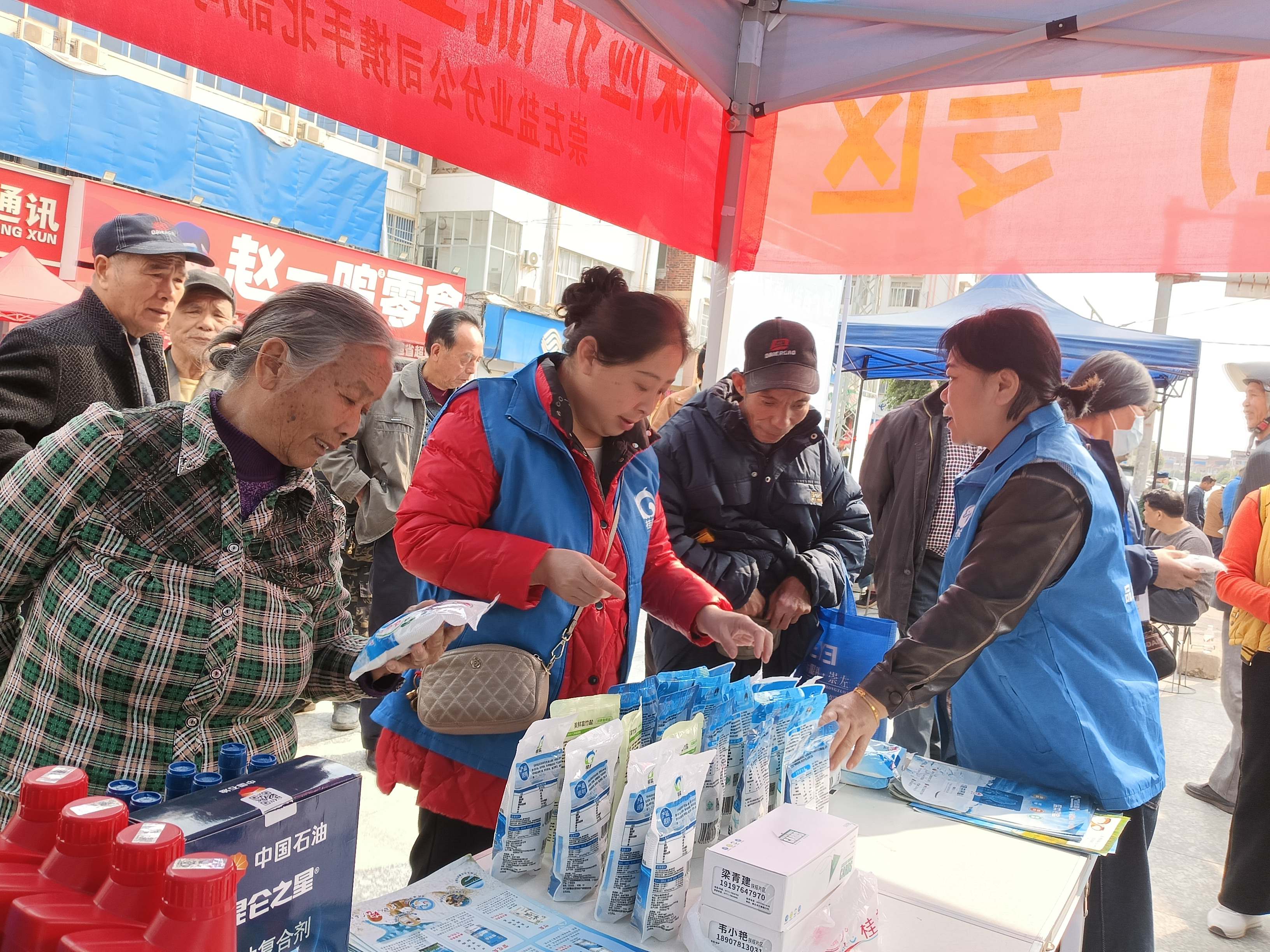 在活動現(xiàn)場,廣西鹽業(yè)崇左分公司積極開展食鹽地推活動。工作人員熱情地向民眾發(fā)放宣傳資料,詳細介紹低鈉鹽、零添加生態(tài)海鹽及海藻碘鹽等不同種類鹽品的特性與優(yōu)勢。北部灣保險崇左分公司為農(nóng)戶們悉心講解各類助農(nóng)保險項目。從農(nóng)作物種植險,為甘蔗、桉樹、水稻等作物的健康生長一路護航,讓農(nóng)戶們安心發(fā)展甘蔗種植產(chǎn)業(yè),全力為農(nóng)業(yè)生產(chǎn)筑牢堅固防線。
