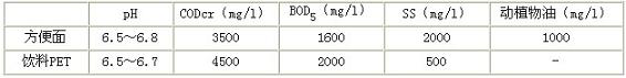 廢水來源為:方便面生產(chǎn)廢水:100 m3/d;飲料(PET)生產(chǎn)廢水:300 m3/d;員工生活廢水:150 m3/d。設計廢水水量為600m3/d。